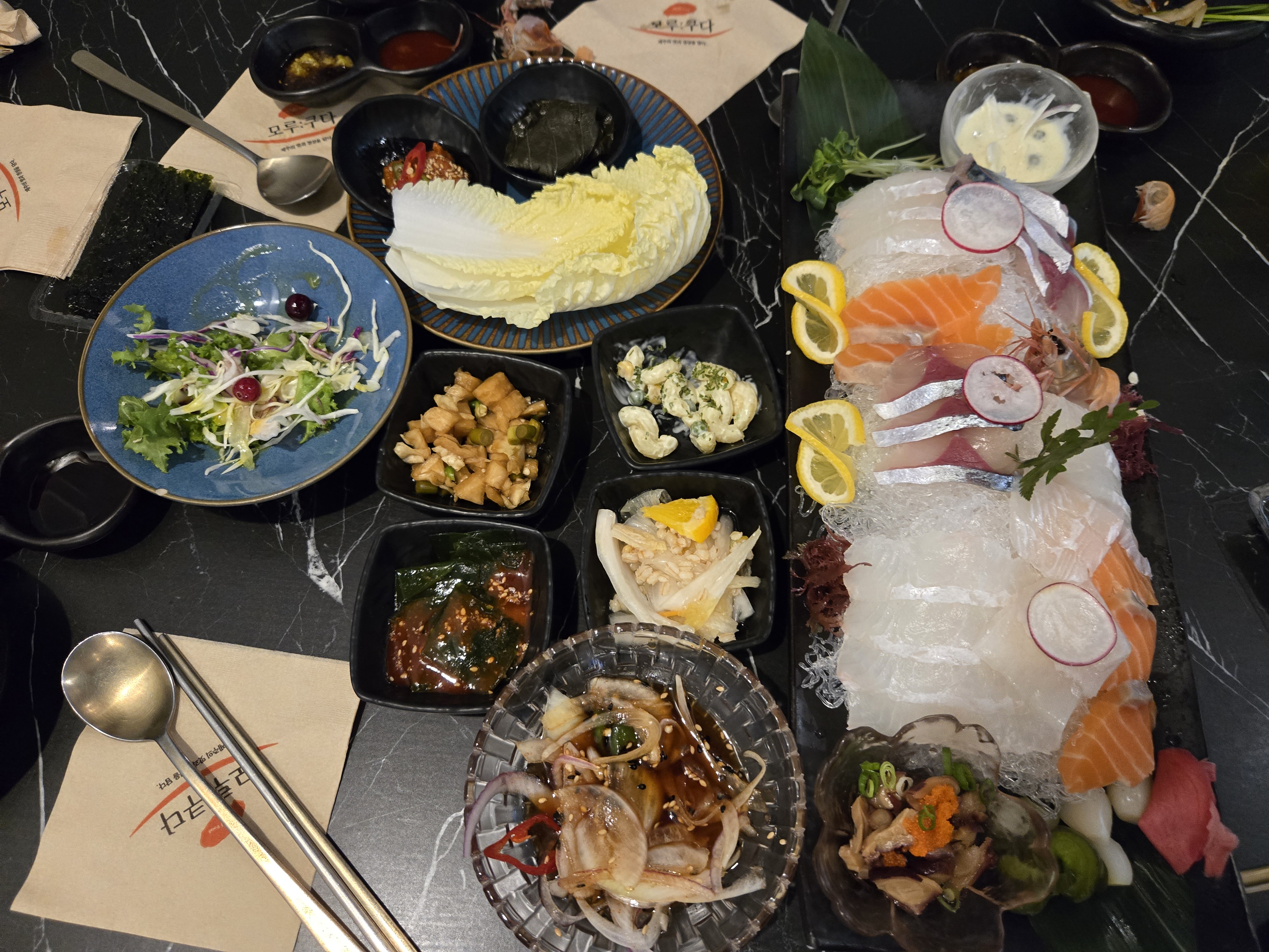 주차 자리 찾느라 시간을 좀 보냈더니.. 이미 서귀포 맛집의 모듬회가 등장해있었다.