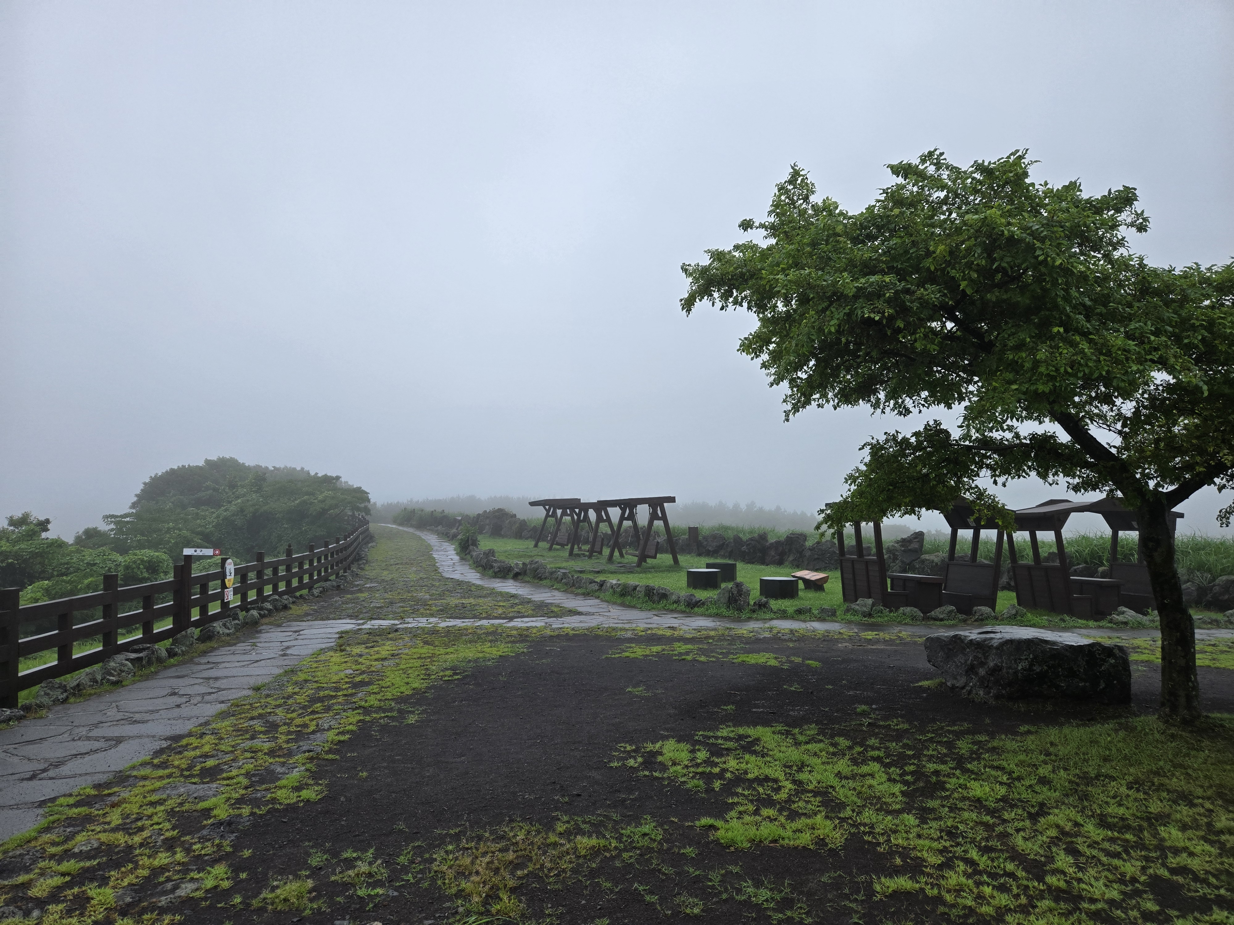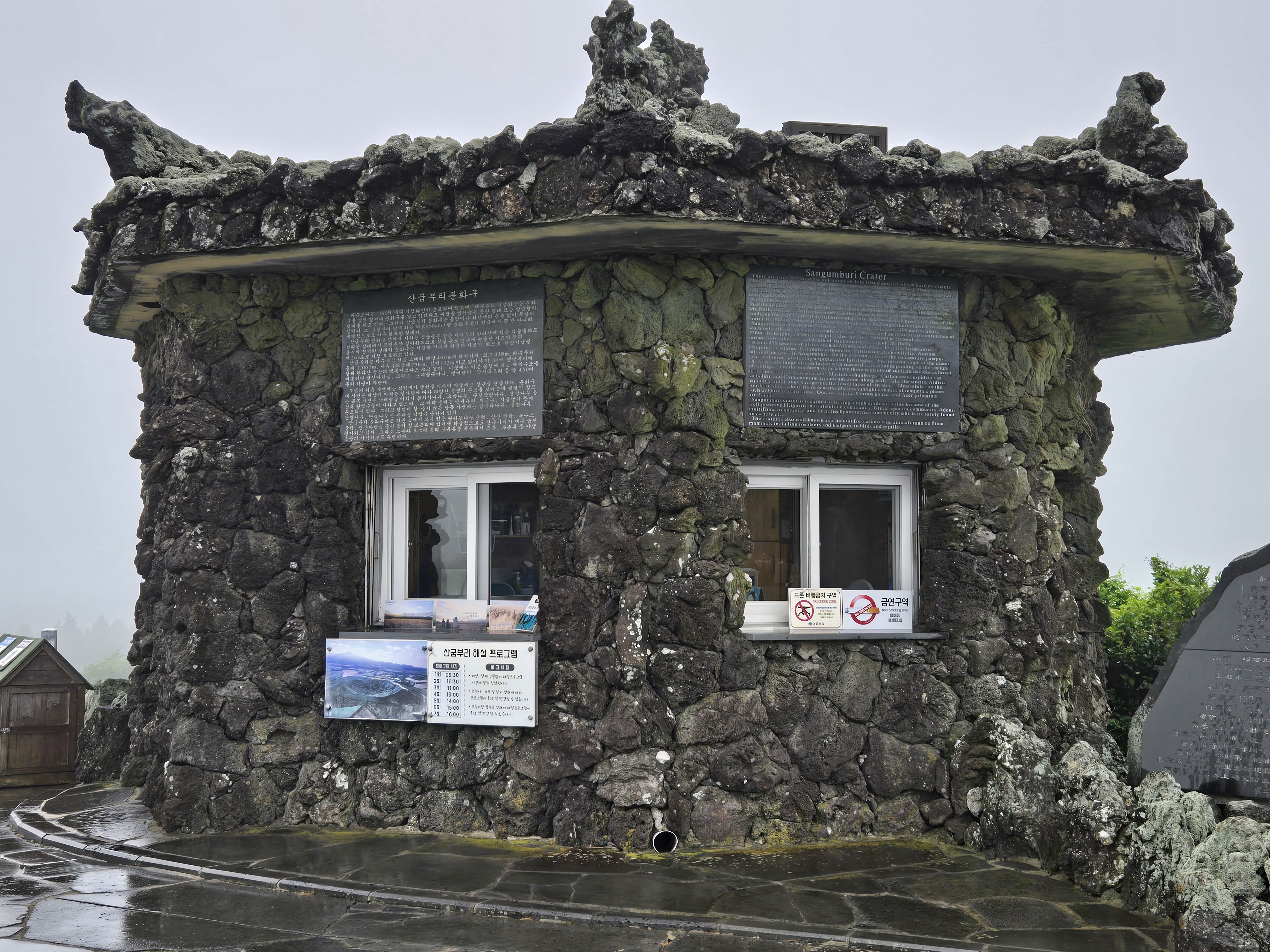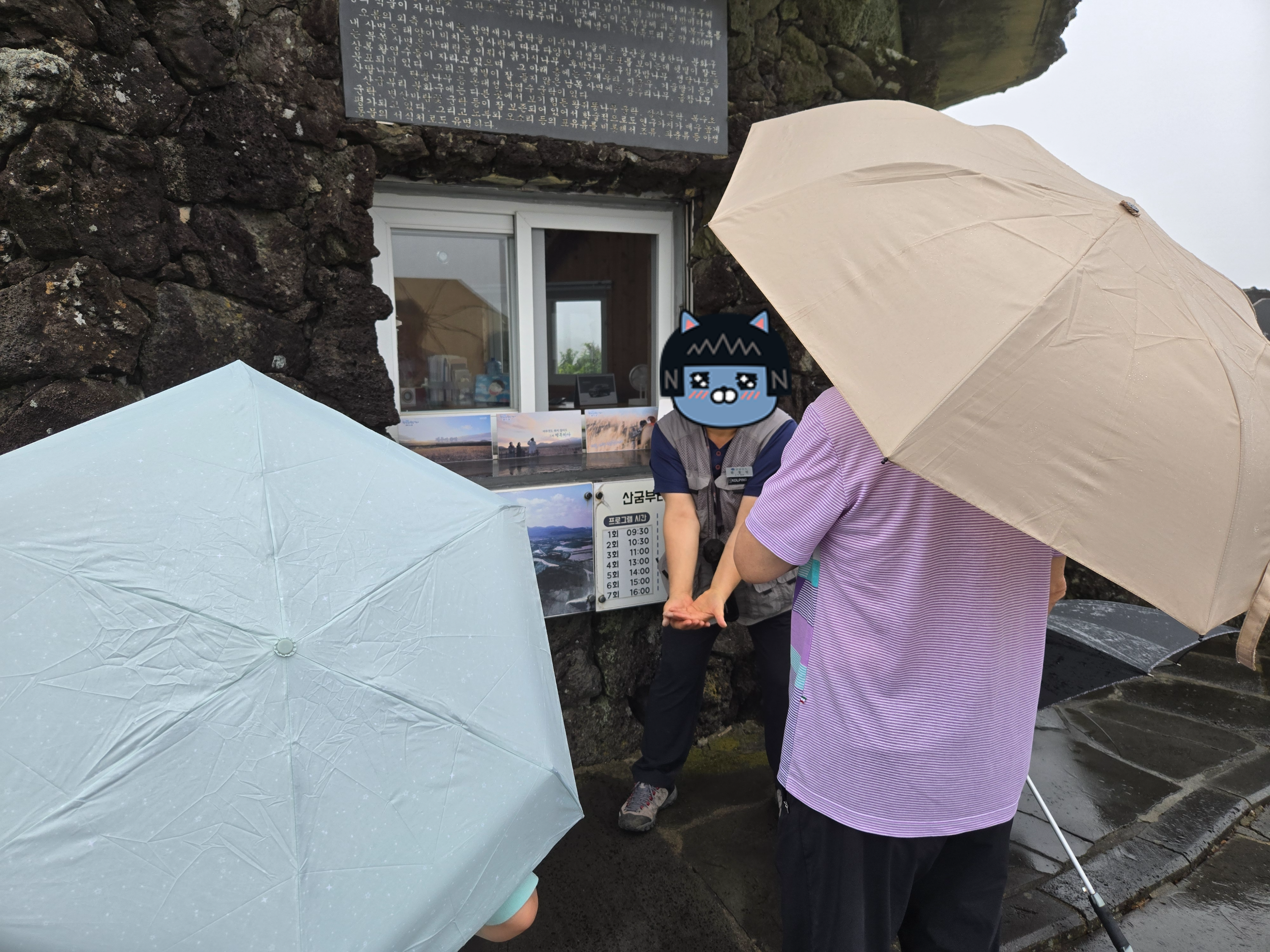 기대하며 산굼부리를 찾아보았지만.. 비가 갑자기 너무 와서 물안개가 껴서 산굼부리의 ㅅ도 보이지 않았다!!!!