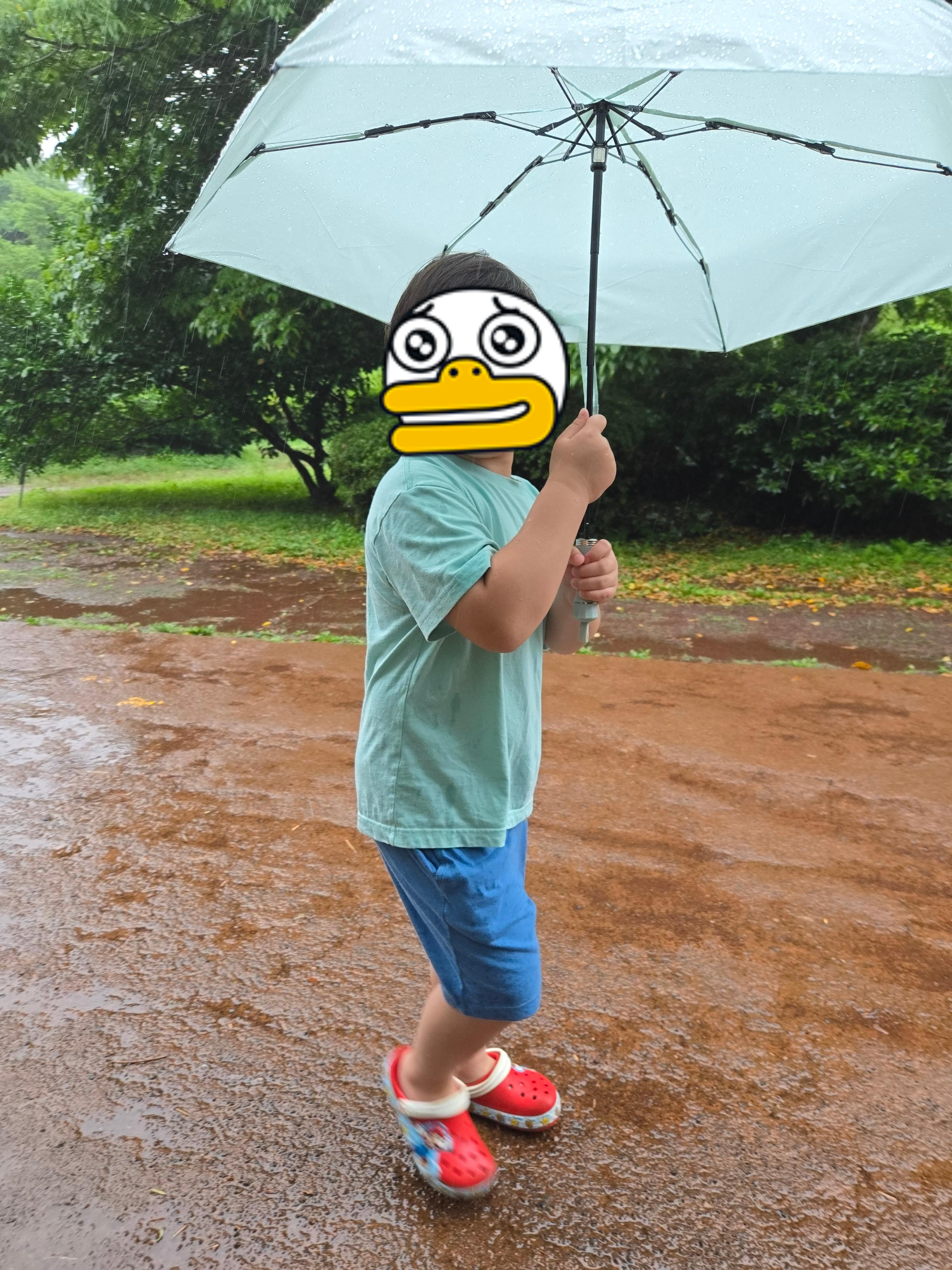 비가 와도 우산 잘 들고 가며 신나게 걷기 시작했다.